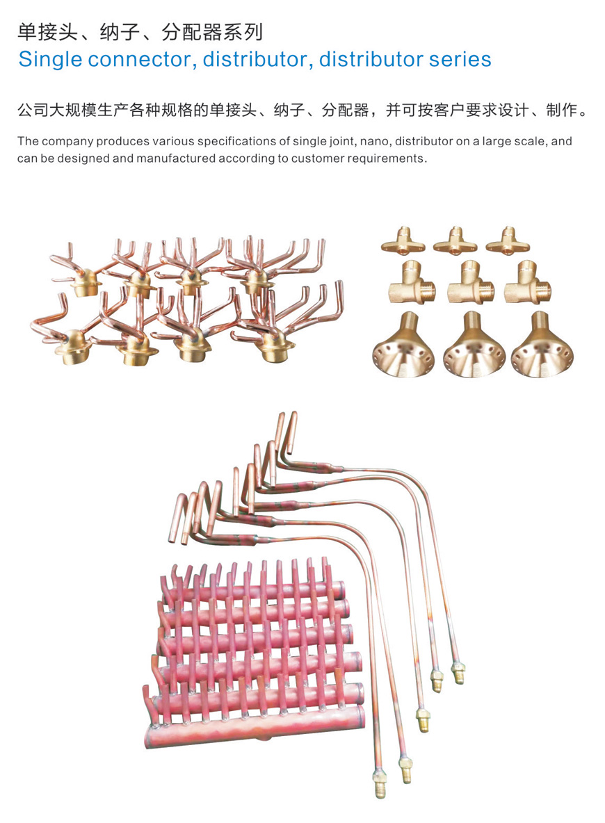 公司大规模生产各种规格的单接头、纳子、分配器,并可按客户要求设计、制作。
