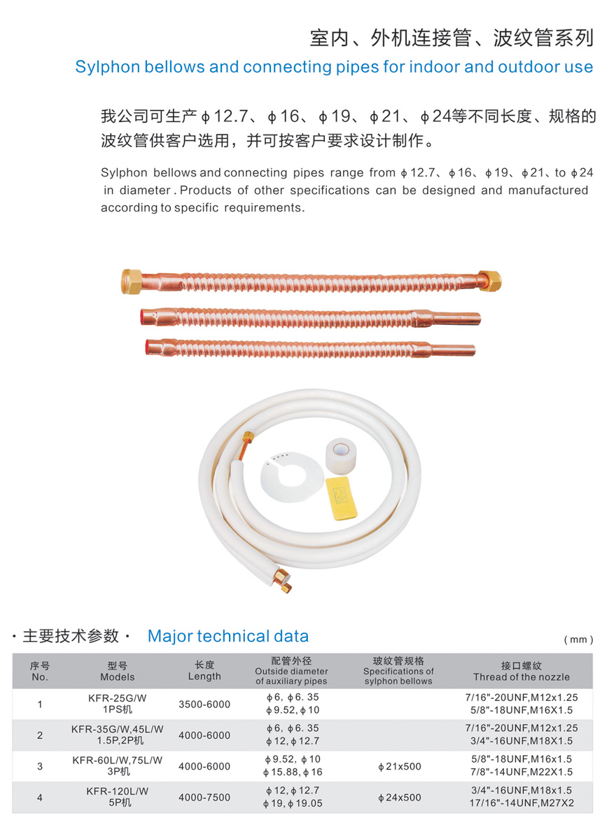 我公司可生产中12.7、中16、中19、中21、中24等不同长度、规格的波纹管供客户选用,并可按客户要求设计制作。